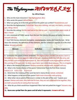 Online PDF HIGHWAYMAN POEM AND QUESTIONS Doc BookBoon